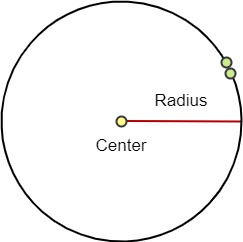 La distance fixe entre le centre et chaque point de l'ensemble s'appelle le rayon. Tu trouveras ci-dessous une représentation graphique de cette définition.
